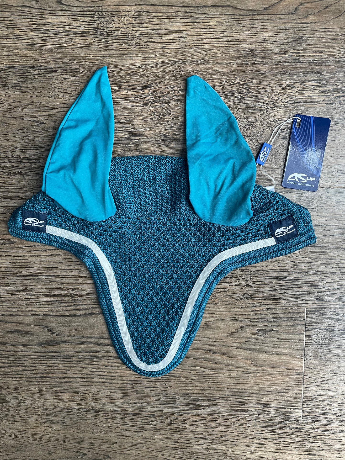 Bonnet *NEUF avec étiquettes* fait en Italie, couleur turquoise foncé grandeur Full/Cheval. Marque: Anna Scarpati 🇮🇹