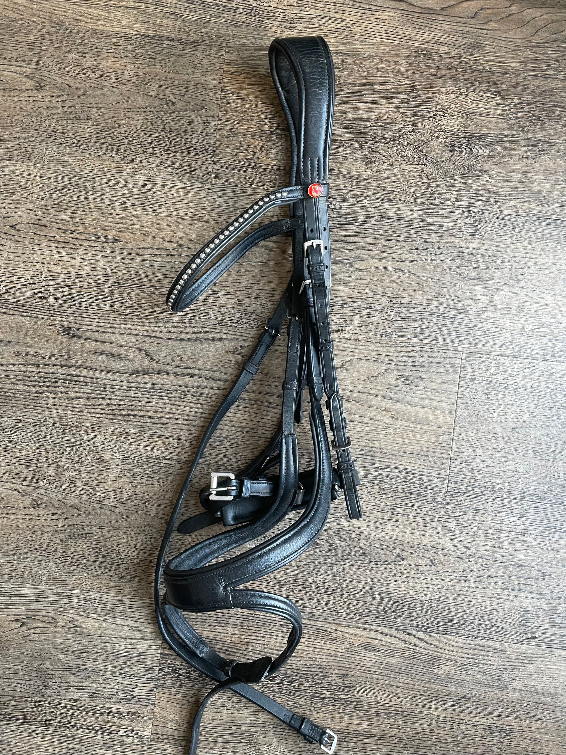 Bride de dressage Kieffer, cuir noir. Show condition. Cuir très souple. Grandeur Full/Cheval . Fait en Allemagne 🇩🇪