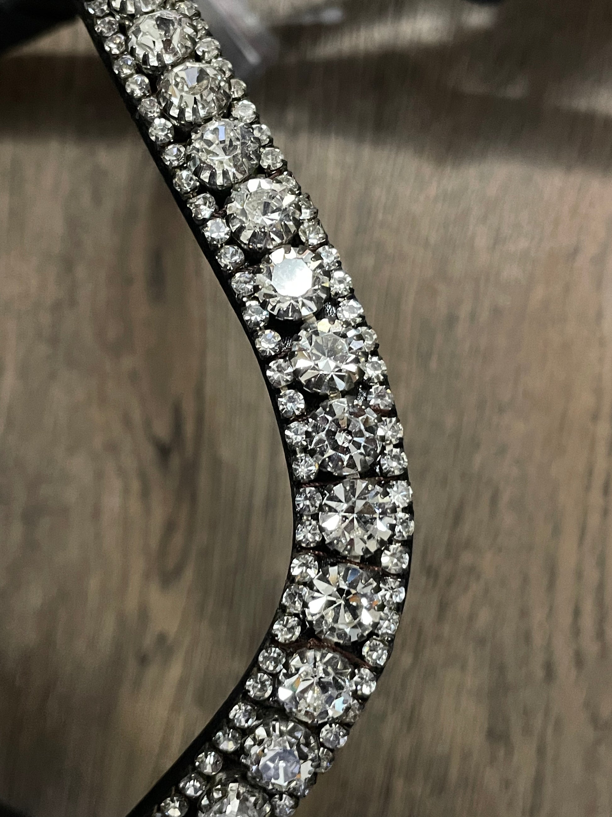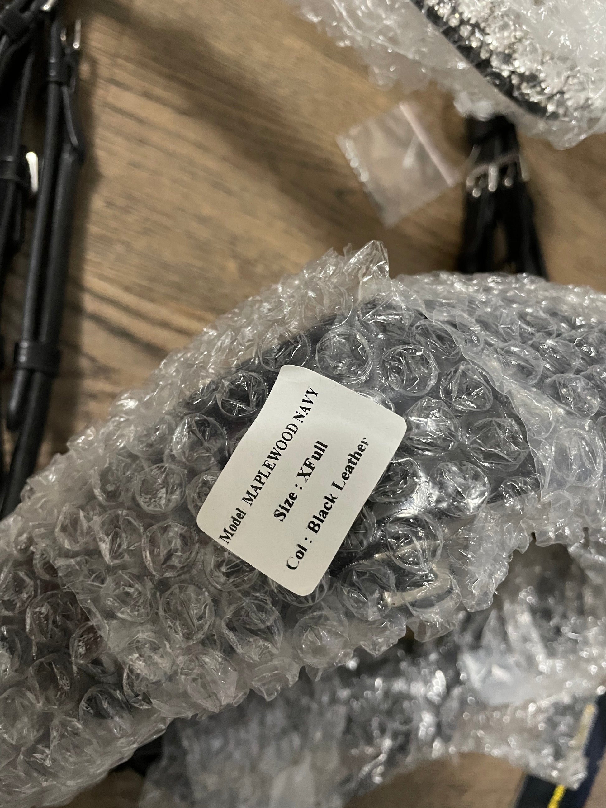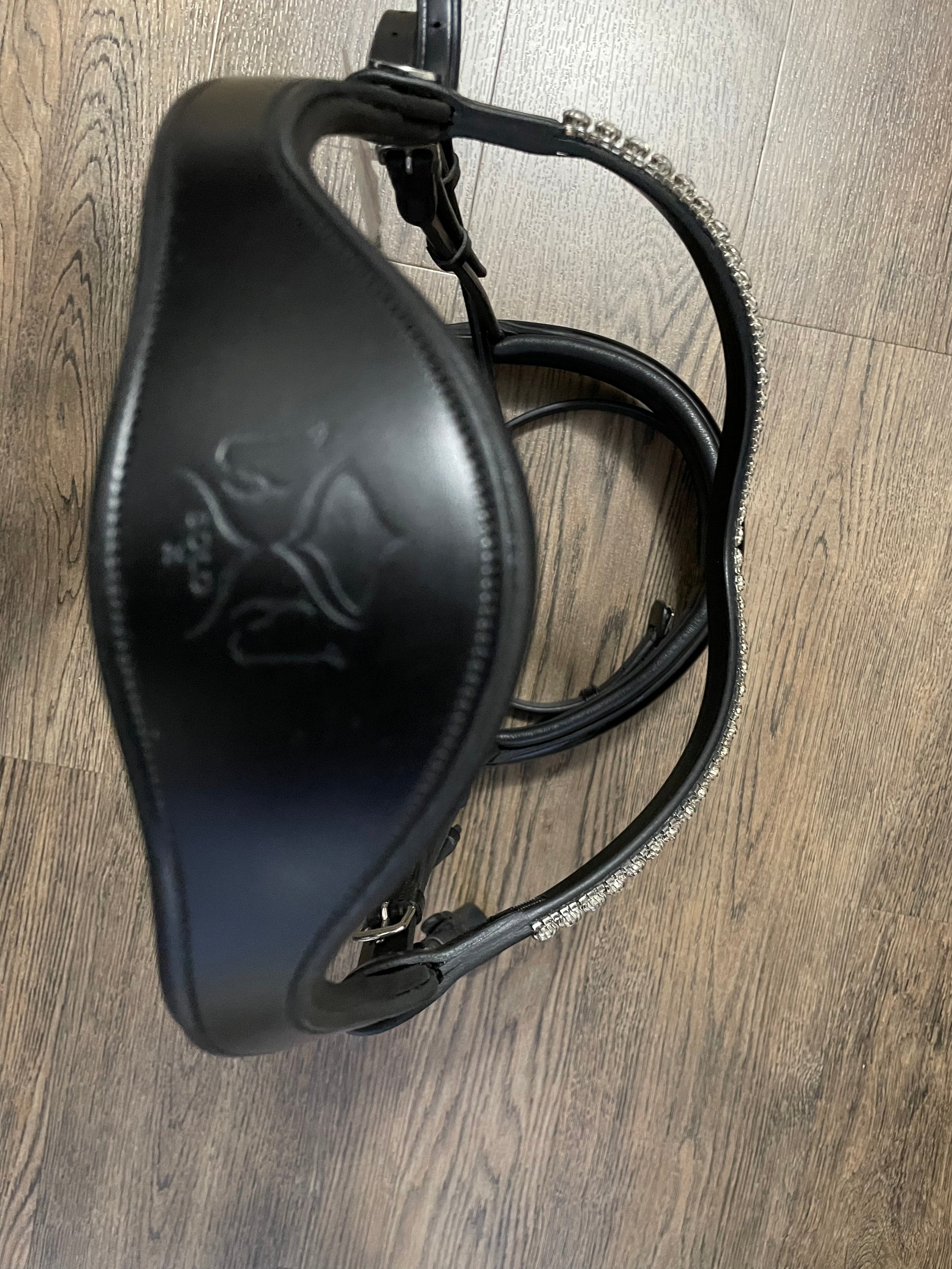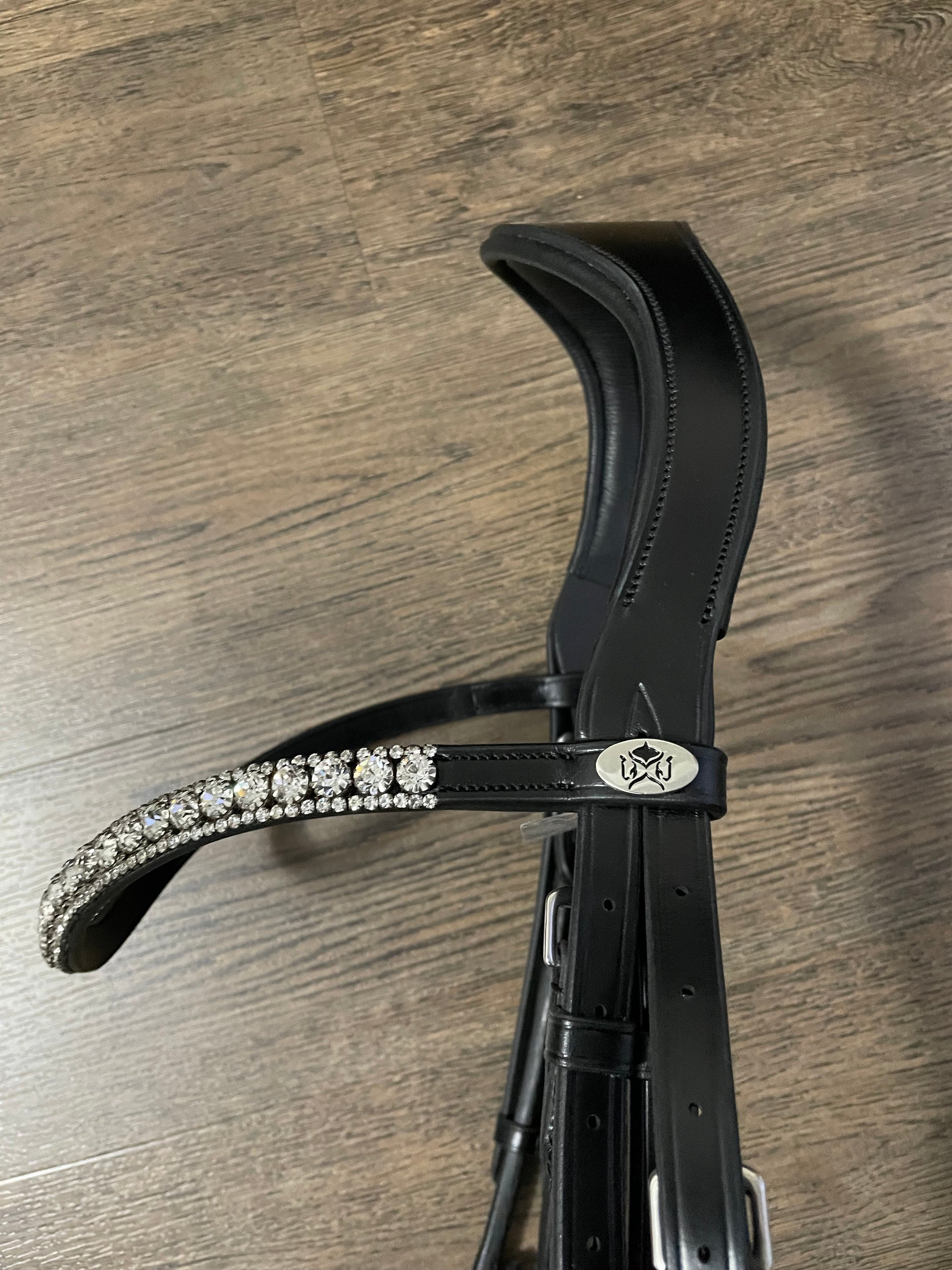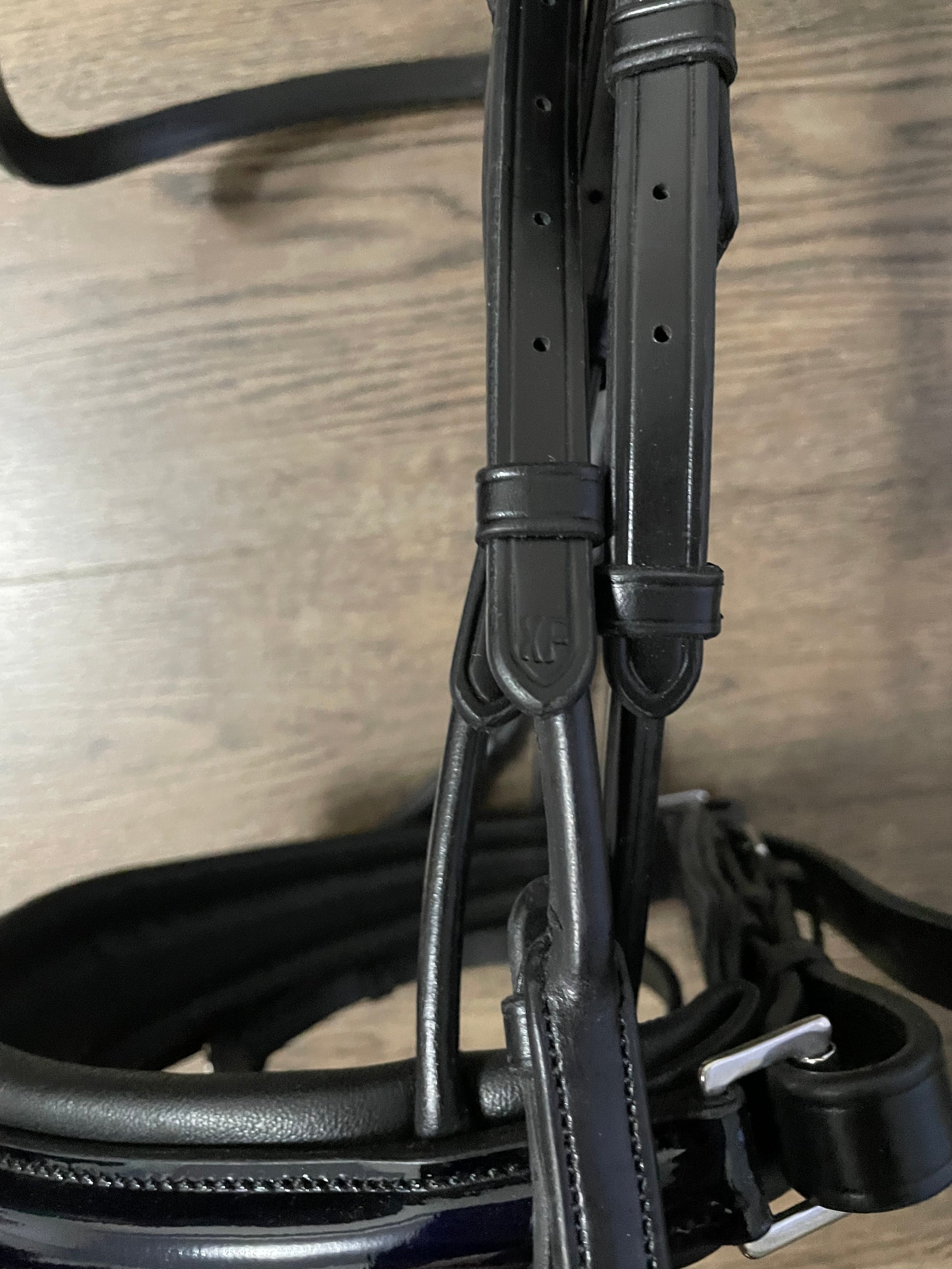 Bride dressage NEUVE par Solo Equine, modèle Maplewood Navy (subtils reflets navy dans le noseband au soleil) Bride de renommée pour sa qualité de cuir Italien.