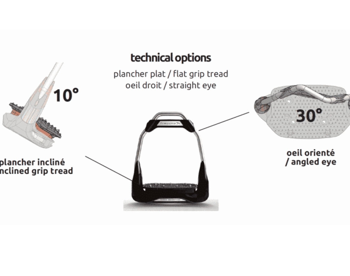 Étriers FreeJump Air avec œillet orienté à 30•degrés avec plancher large technologie absorption des chocs.