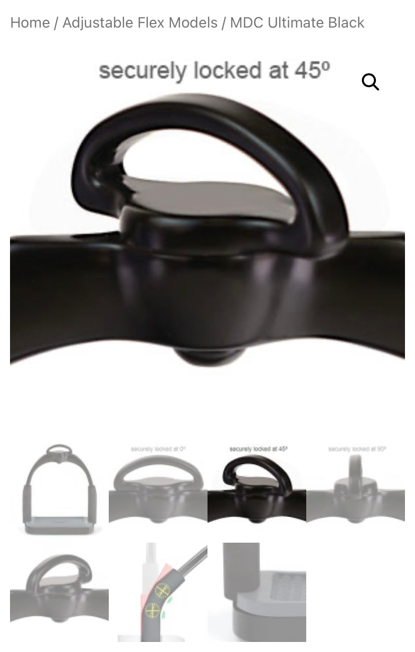 Étriers de marque MDC, modèle Ultimate Noir. L’oeillet est amovible et l’angle peut être changé. En très bonne condition (usagés) (la peinture à écaillée à certains endroits, la compagnie a émis un communiqué pour cette problématique qui est esthétique seulement).