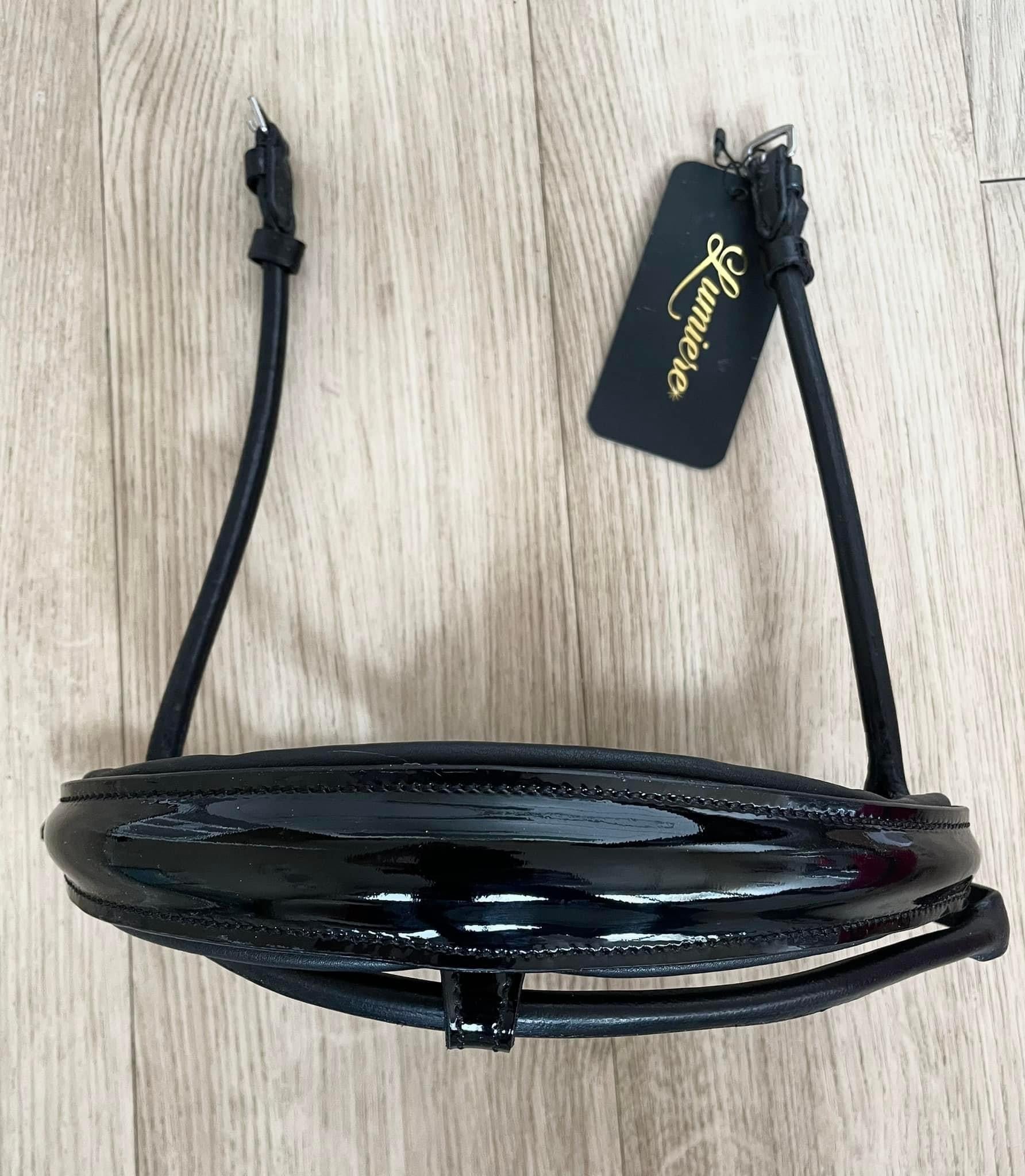 Muserolle de Dressage NEUVE! Marque: Lumiere Equestrian. Cuir roulé. Grandeur COB, CHEVAL et WB.
