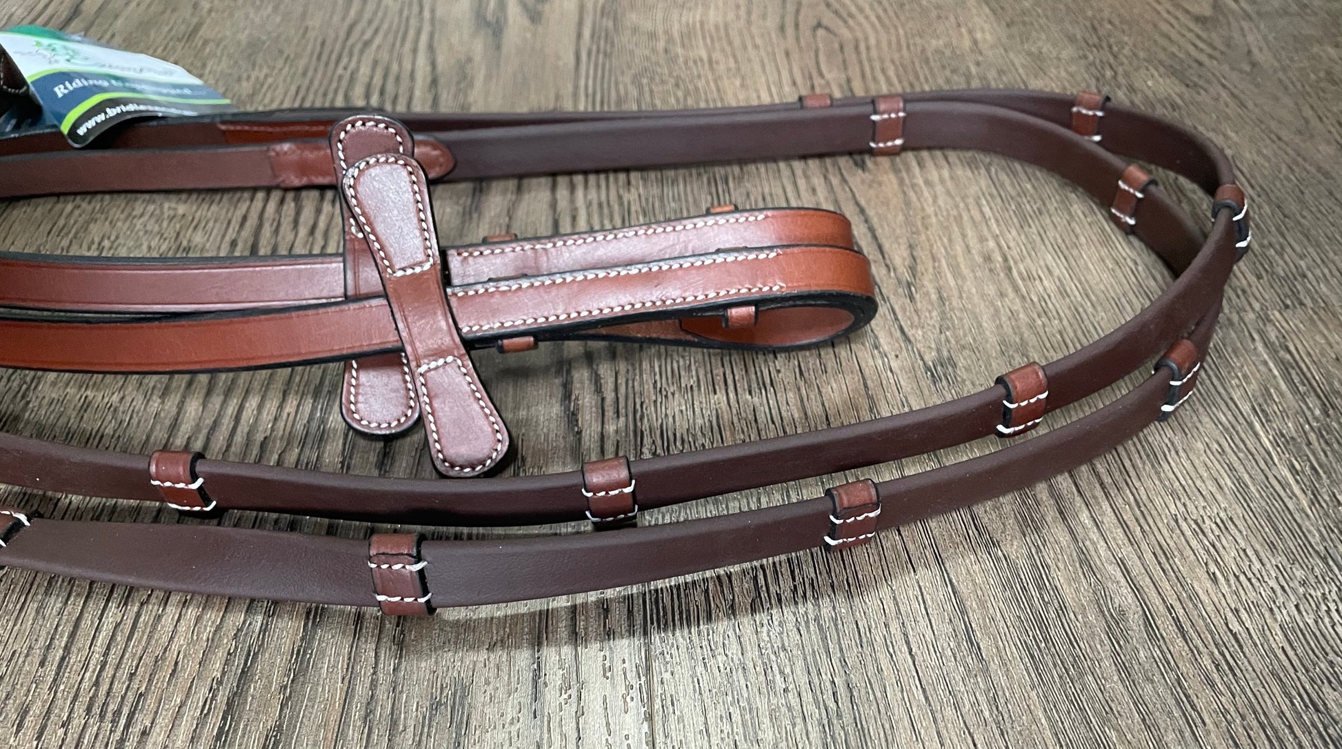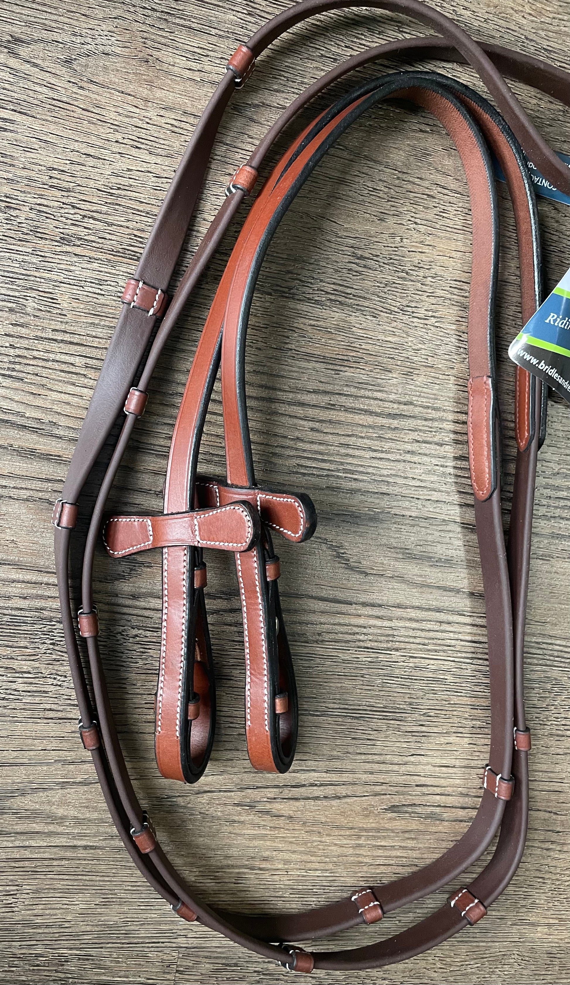 Rênes en cuir et caoutchouc (avec arrêtoirs en cuir) couleur Tobacco. *NEUF avec étiquettes*