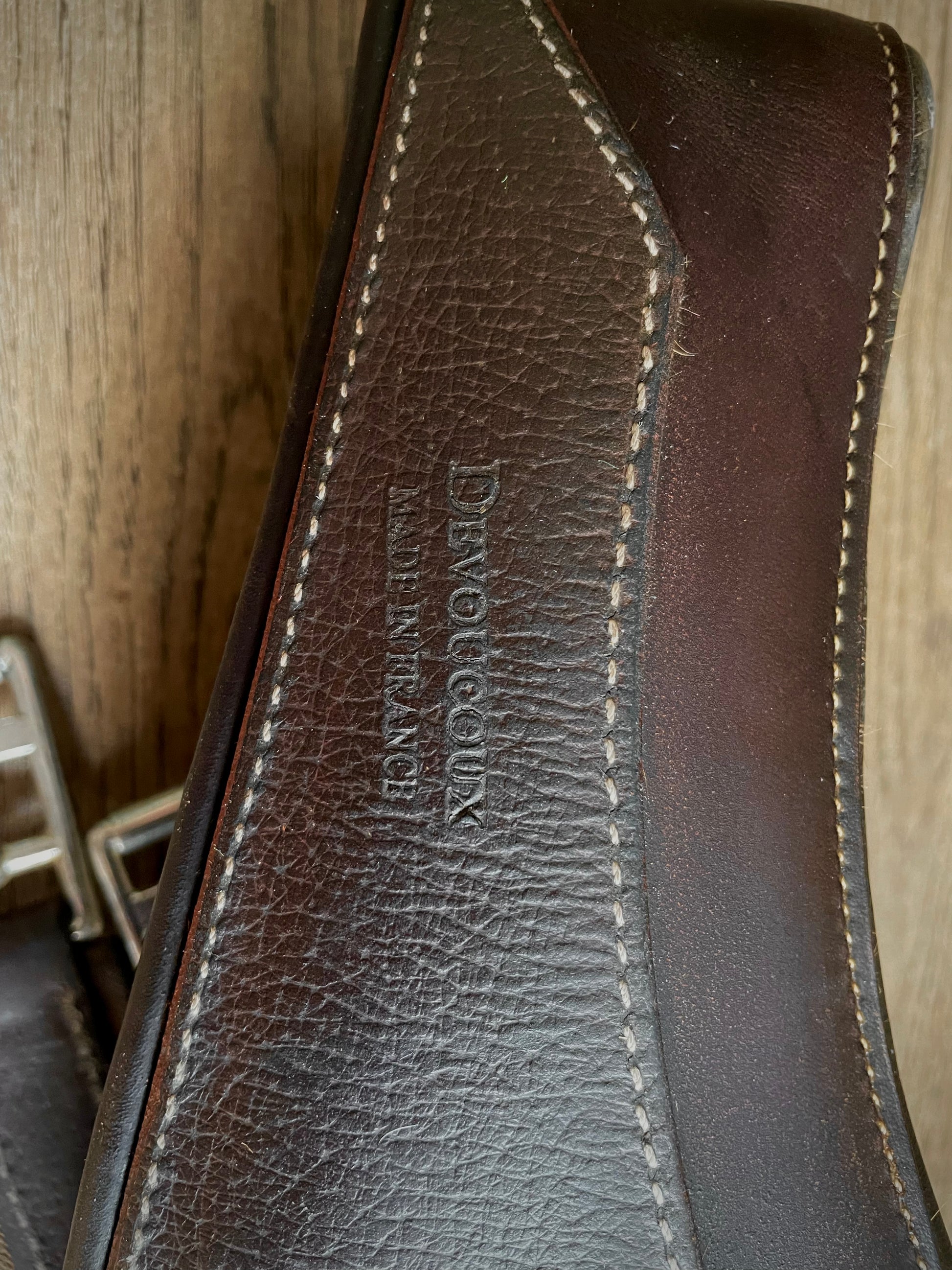 Sangle anatomique Devoucoux couleur havana (brun foncé) , élastiques des 2 côtés. Grandeur 54"