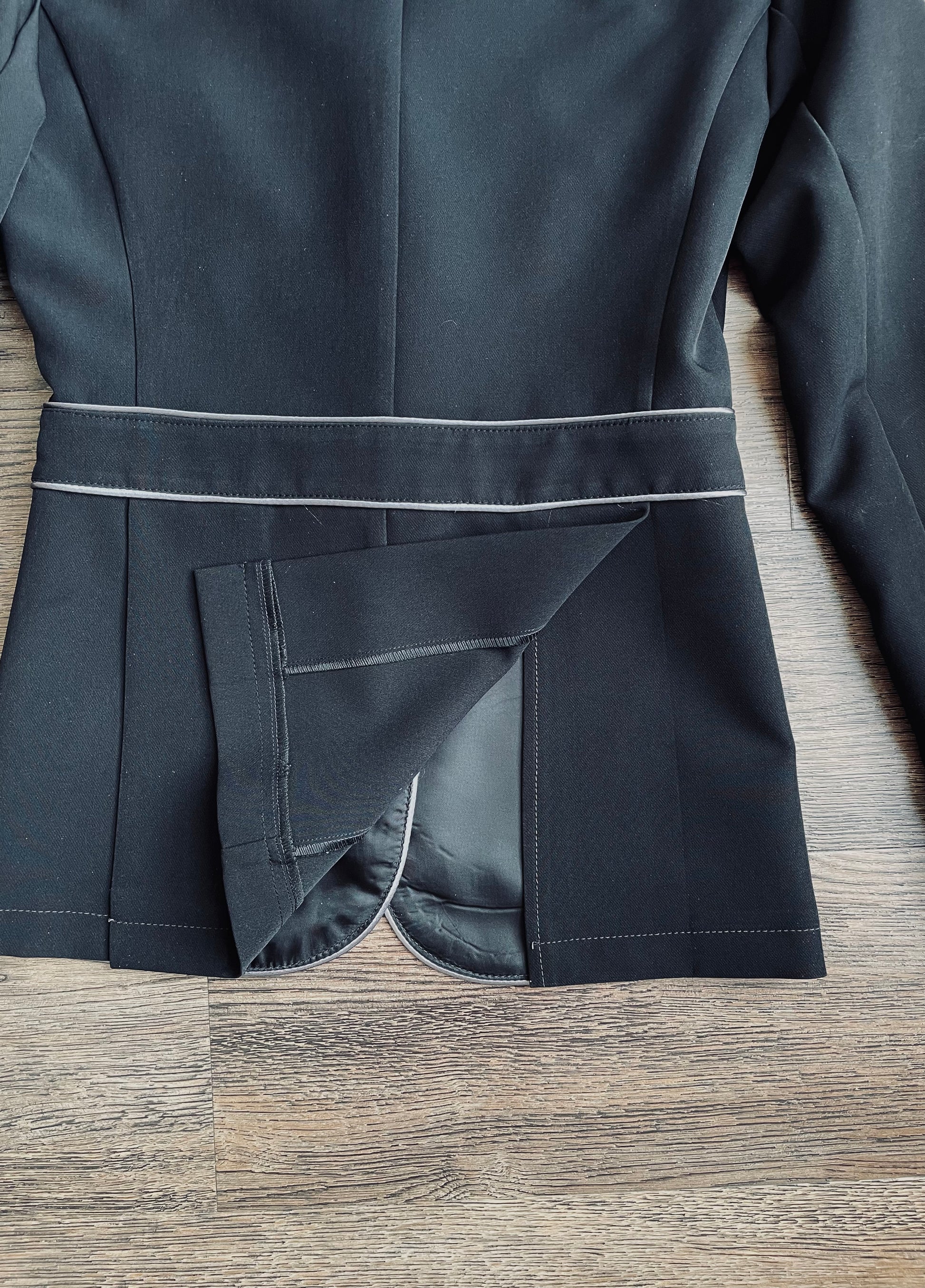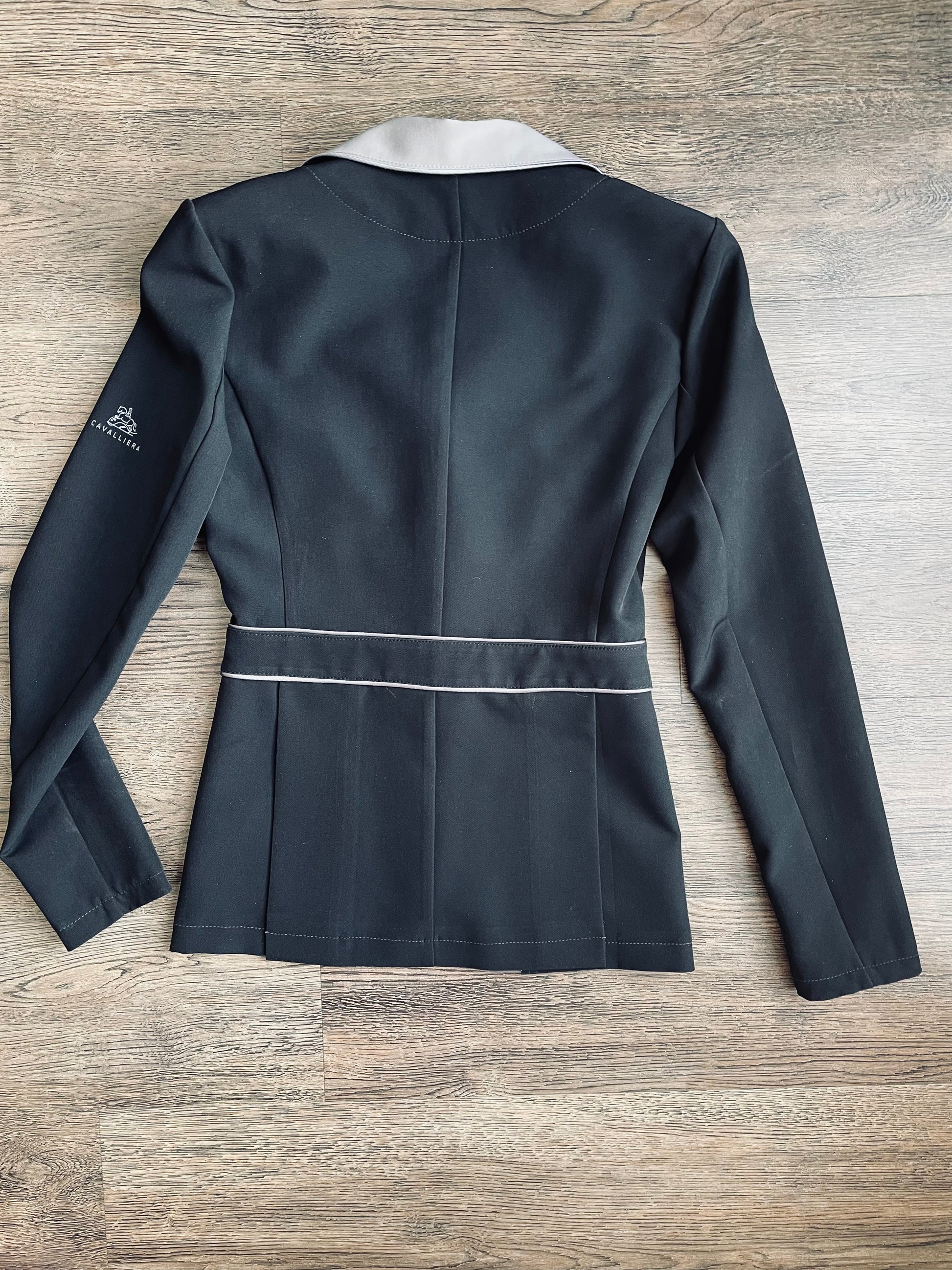 Veston de concours de marque Cavalliera Italia 🇮🇹 grandeur XS. En excellent état ( porté 2x en concours) Couleur noir, piping et collet gris platine. Très léger.
